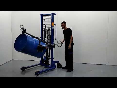 Descripción Apilador rotador de bidones, adecuado para bidones de acero 220 L, gracias a su trinquete ajustable. Gracias a su manivela al reductor y a la bomba hidráulica, los bidones se elevan, giran, agitan, vacían y se transportan con gran facilidad. También llamado: Apilador manipulador de bidones, Volquete vaciador bidones. Volteador.