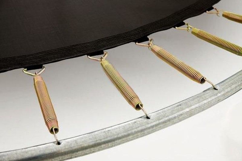 Cama elástica pensada para ser enterrada. La parte superior del bastidor se apoya en pies bajos especiales que se fijan en el suelo sólidamente con las amarras suministradas que se colocan a cierta profundidad en el suelo para fijar la cama elástica.