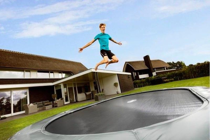 El sistema de muelles Twinspring de doble muelle en forma de "V" aumenta el área de salto perfecto y aporta mejor confort en el salto. La lona elástica tiene unos poros más abiertos que dejan fluir el aire con más libertad, es la llamada tela Airflow que junto con los muelles Twingsping hacen el mejor salto. La estructura del trampolín está bien protegida para el exterior y tiene un elegante color negro que le da una protección extra. La cama elástica BERG Grand Elite Inground 520 tiene el borde protector más resistente y está disponible disponible en color gris.