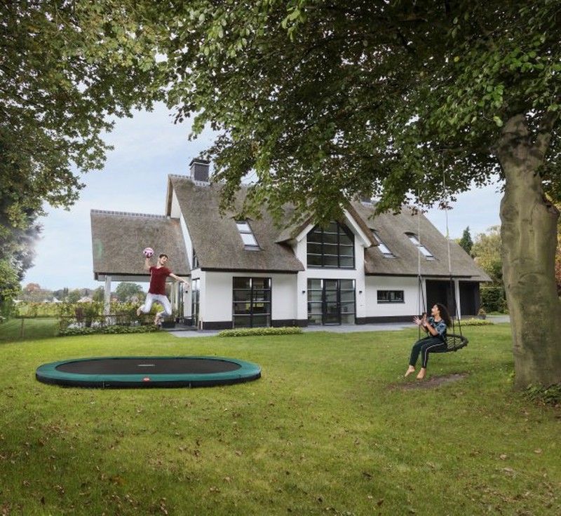 La forma ovalada combina la fuerza eficiente de una estructura redonda con la superficie de salto grande de una cama elástica rectangular. En una cama elástica ovalada puedes saltar cómodamente por todo lo largo.