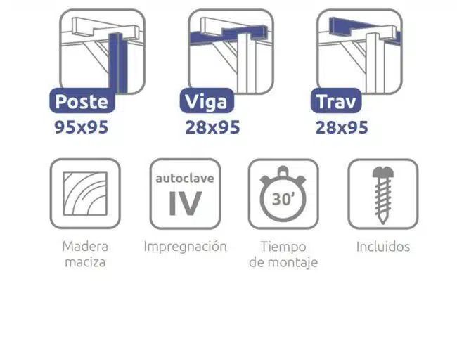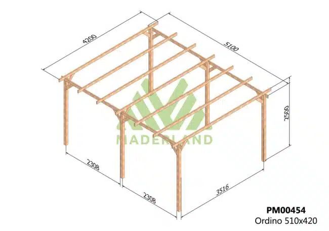 Pergola de madera Laminada ORDINO GL24 + tornilleria