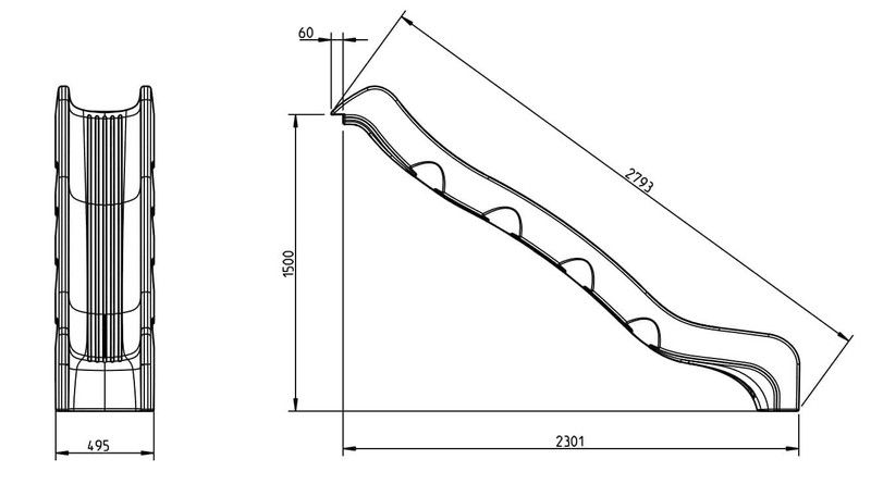 Rampa de tobogán de repuesto homologada para comunidades de propietarios, hoteles, restaurantes y campings. Una rampa de tobogán más gruesa y fuerte que las de uso doméstico pero no es antivandálica como las metálicas. Para ser instalada a una altura de 1,5 m.